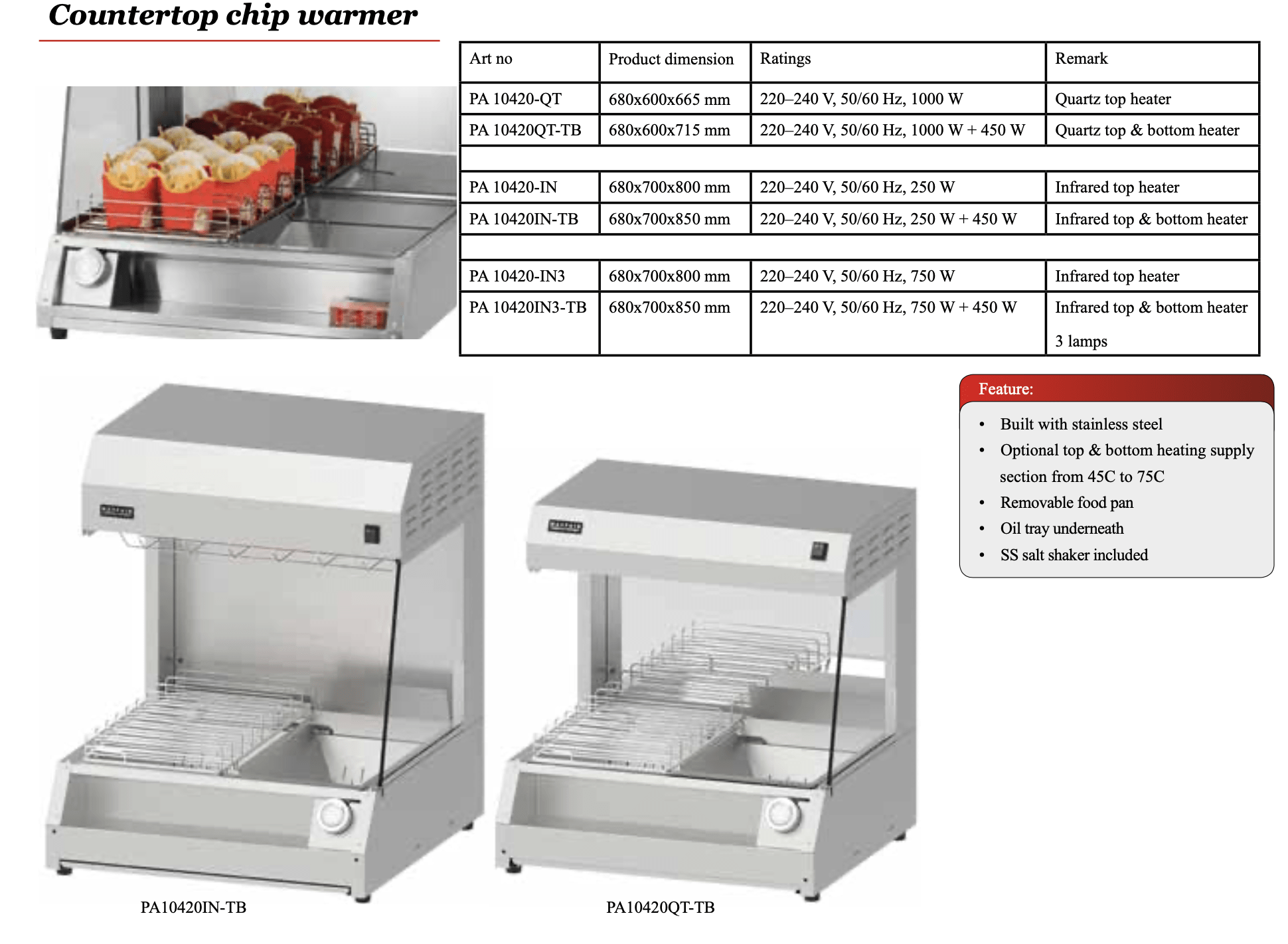 Countertop chip warmer